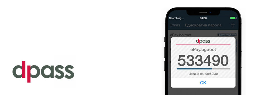 Еднократната парола dpass e предназначена за допълнително осигуряване на плащанията в ePay.bg посредством временен код, валиден за 30 секунди.